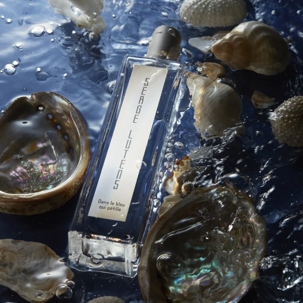 そして同時に二本の新作が発売されました。そのうちのひとつ「ダンルブルーキペティーユ」は、クリストファー・シェルドレイクにより調香されました。その名の意味はフランス語で〝泡立つブルー、きらめくブルー〟です。「青のきらめき」という邦題がついています。