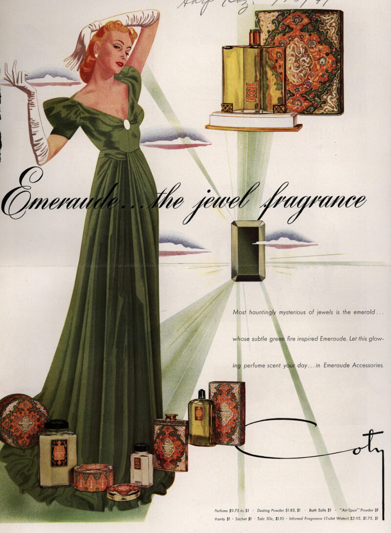 実は、世界最初の〝オリエンタル・フレグランス〟ではないかと言われているコティの「エメロード」です。フランソワ・コティにより調香されました。