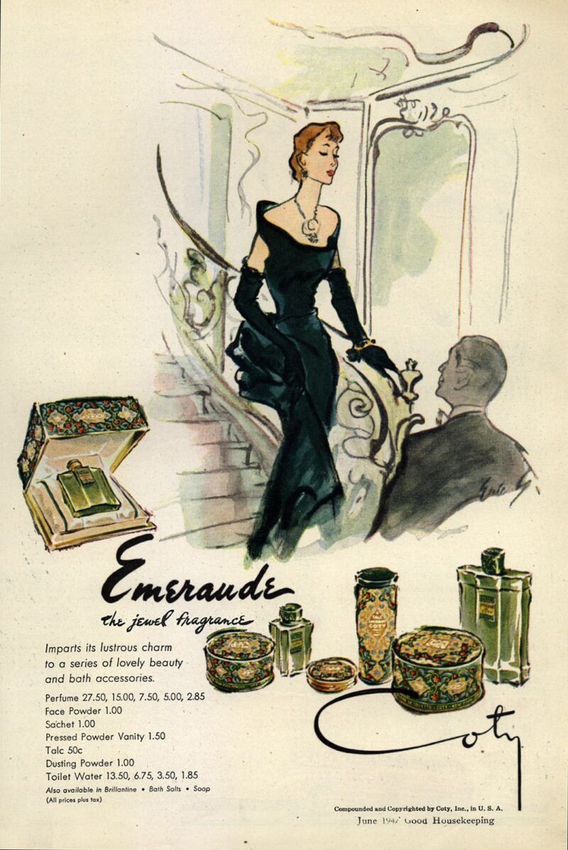 「シャリマー」よりも4年早く発売されたオリジナルの「エメロード」は最高傑作だった(コティはゲランにこの処方を売ったという噂だ)。今でもオリエンタル調の香水では右に出るものはないと思う。