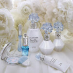 香りによって桃源郷を再現しようとしたフルーティフローラルの香りは、幻想的なキャロットシードがふんわり甘く立ち込める薄靄からはじまります。すぐにその香りのみちびくままに薄靄の中に足を踏みいれた瞬間、すーっと薄靄が引き下がり、白桃(ホワイトピーチ)の花に包まれた楽園が開けてゆきます。天国にいちばん近い〝白桃〟の香りにようこそ。