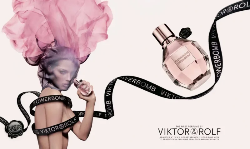 素晴らしいボトル・デザインとネーミングの勝利とも言える「フラワーボム」=「花の爆弾」=「香りの時限爆弾」の誕生です。二人のデザイナーは名前の決定、ボトルやパッケージのデザイン、広告のすべてに関わりました。