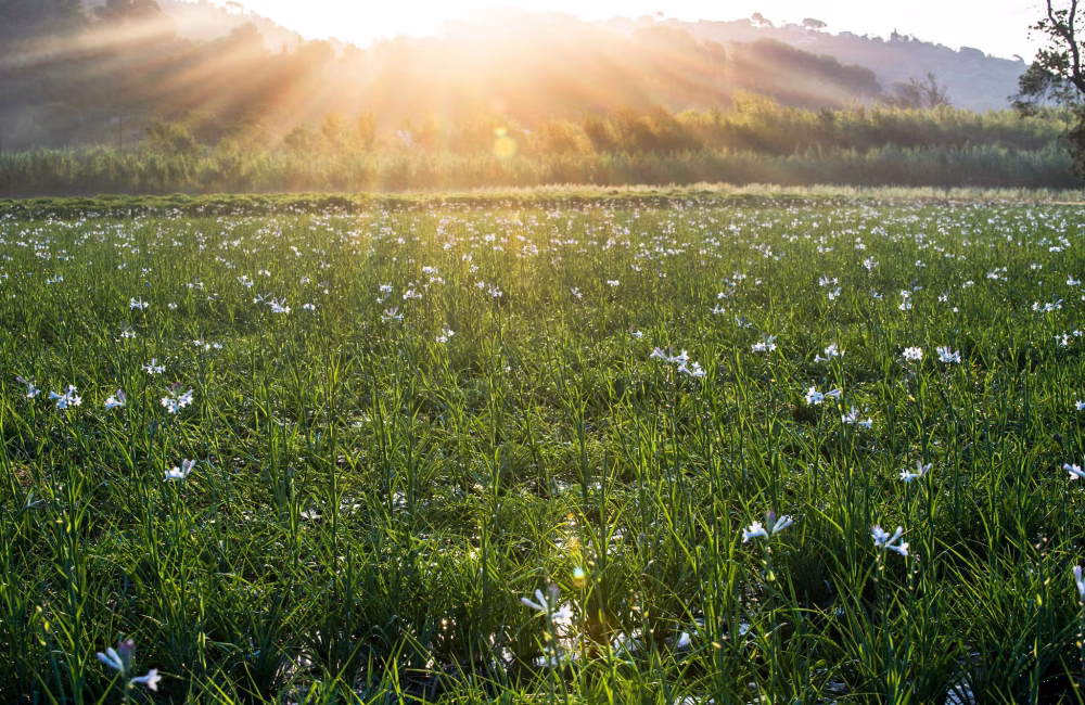 - チュニジア産のオレンジ・ブロッサムは、この香りにフレッシュとスパークリングする感覚を与えています。まるで光り輝く太陽のような花の側面を生み出しています。