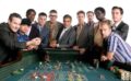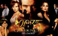 3着目は、モンテネグロでボンドカーのDBSを手に入れるときに着ています。ブリオーニ製のダークネイビーのウールスーツで、ノッチラペル、3つボタンです。そして、ブリオーニ製のグレーストライプの水色のドレスシャツにブルー&ホワイトのスクエア模様のシルクタイを合わせています。