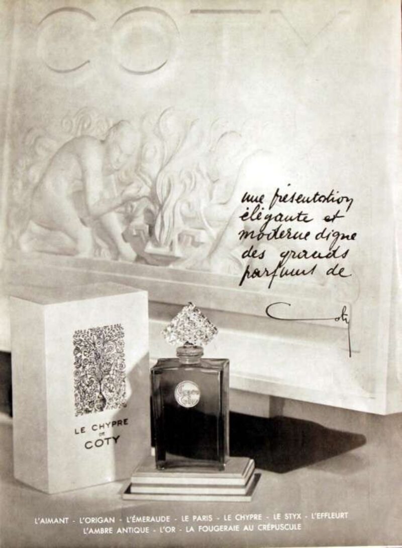 現代のシプレという香調が確立したのはコティの「シプレ」からであり、オークモスの力強く土臭い香調を、過剰なベルガモットとジャスミンで調和させることで、男性と女性の要素を最も巧みに融合させることに成功し、彼は新たな香調を生み出すことになりました。