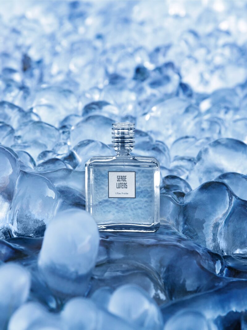 「ローセルジュルタンス」は、屋外で乾いてゆくシーツの肌触りを思わせ、肌にのせると、清潔な体に白いシャツをさらりと羽織ったような感覚をもたらします。一方、こちらはその名の通り、つけた瞬間に氷のように冷たく、その涼しさを長く保ち続けます。