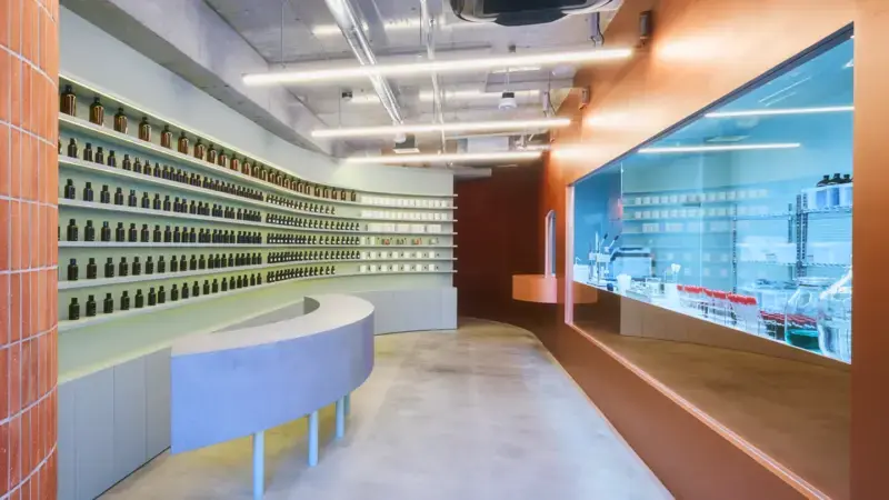 中目黒にあるラボパフューマリーのすごい所は、かつてはオンラインでもカウンセリングから1ヶ月後の提供をしていたオーダーメイドパフュームが、化粧品製造の認可を取得したラボ(製造)スペースを併設することで、即日お持ち帰りできるところにあります。