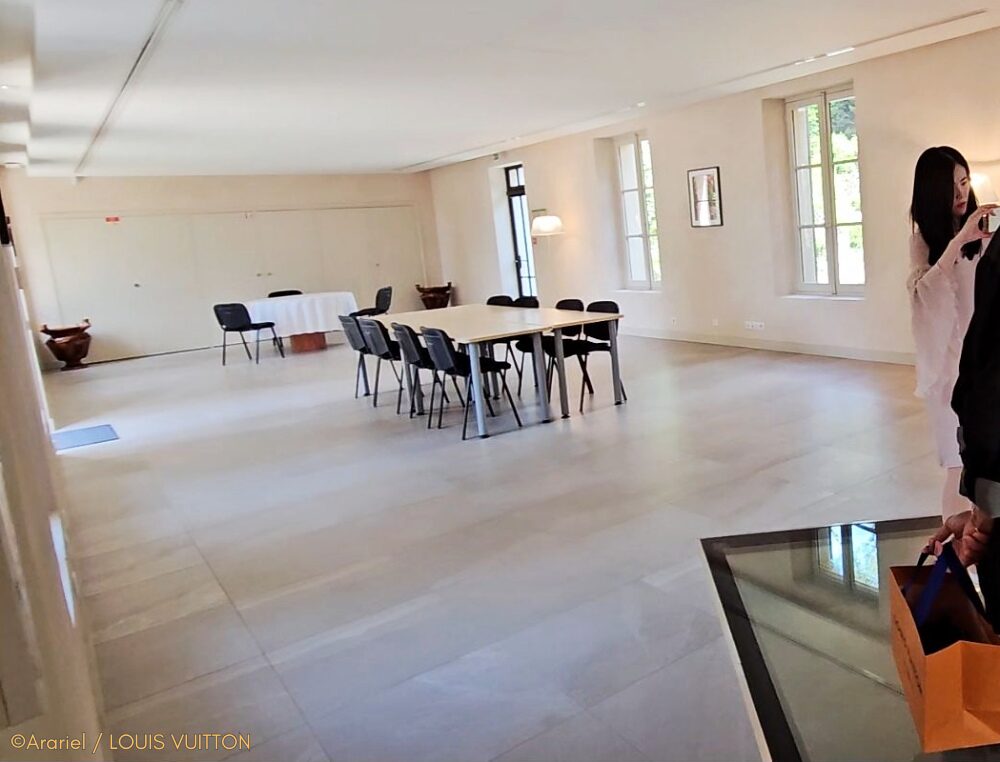 ルイ・ヴィトンが2013年にこの敷地一帯を購入するまで当時廃墟になっていたこの建物は、元々は、私たちが宿泊していたヴィラに香水工場があり、アトリエは作業者の宿泊所と販売店でした。