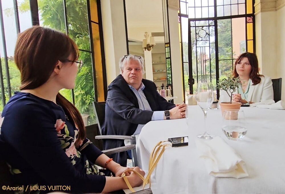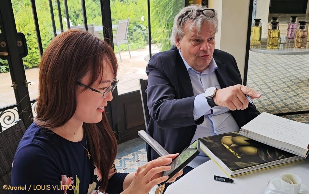 午前11時からジャック・キャヴァリエさんのコンサルテーションを受けました。私の人生において最も美しいひとときであり、最も緊張した瞬間でした。私がずっと愛してきた数々のフレグランスを調香した人であり、愛するルイ・ヴィトンのフレグランスの調香師である〝夢の人〟と会うことが出来ました。