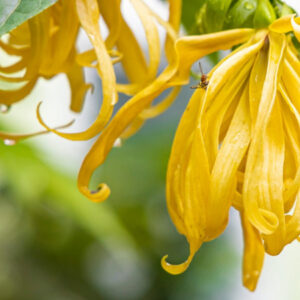 やがて淡いムスクの風が、ふんわりと花々を一層激しく揺らめかせ、中毒性のある艶やかな甘さと緑の輝きを解き放つのです。そこに、流れる花蜜のようなクリーミーなバニラがティアレ・フラワーと一緒に到来し、明るく煌めく甘さで全てをひとまとめにしてゆくのです。