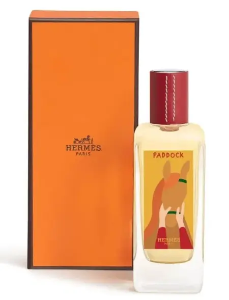 2024年3月に開催された「ソー・エルメス」に併せて、2月から4月にかけて6週間限定でパリのエルメスのブティック三店舗だけで「パドック」は発売されました。騎手と馬がウォーミングアップする小さな放牧地にちなんで名づけられました。価格は通常のエルメッセンスの約1.5倍です。