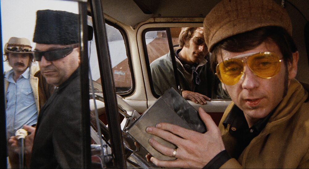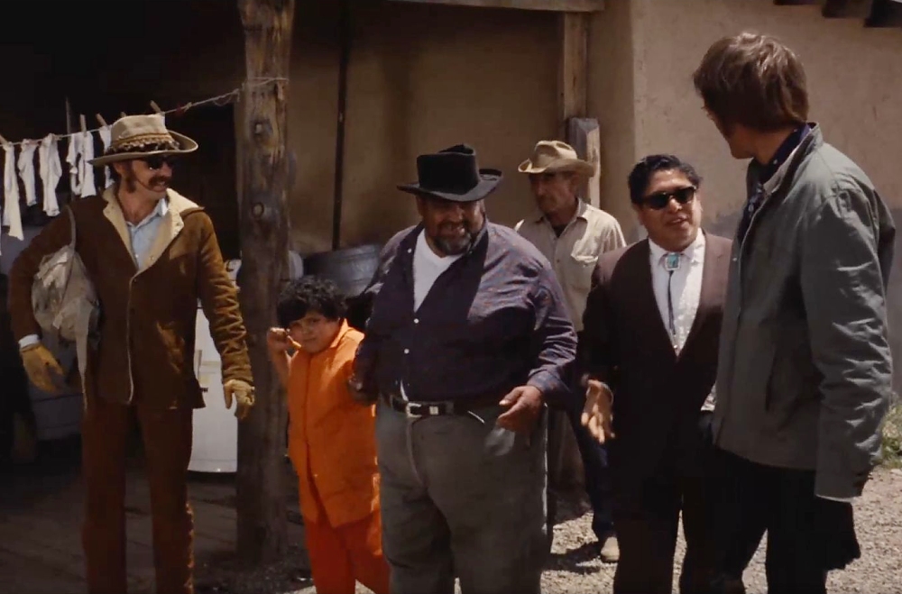 このサングラス姿と、吹き替え=山田康雄に納得させられるもみ上げに圧倒されます。『ウエスタン』(1968)で強烈な悪役デビューを果たしたヘンリー・フォンダ(1905-1982)の息子であり、『バーバレラ』(1968)で無重力ストリップを披露したジェーン・フォンダ(1937-)の弟でもある、ピーター・フォンダ(1940ー2019)の登場です。