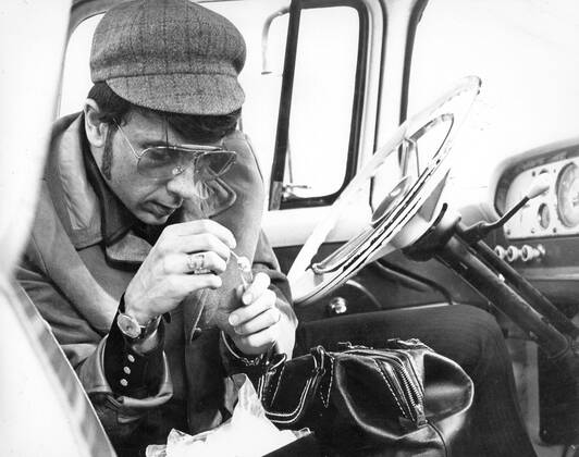 実に嬉しそうにコカイン・ボックスを持つフィル・スペクター。