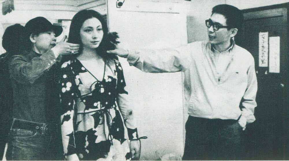 「女囚701号/さそり」のために衣装を調える梶芽衣子と監督の伊藤俊也。
