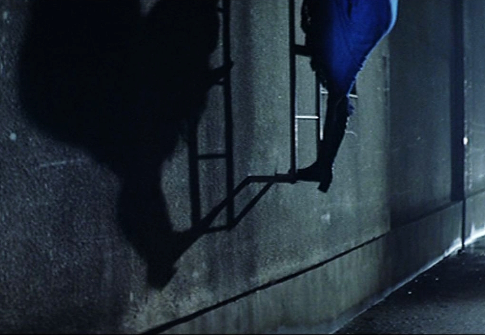 ラストシーンで、表参道歩道橋に立つ。右手にオリエンタルバザーが見えるが今と街頭の雰囲気はまったく違います。映画の大半は、セルジオ・レオーネの西部劇に出てきそうなマント風のグレイの布切れを身に纏っています。