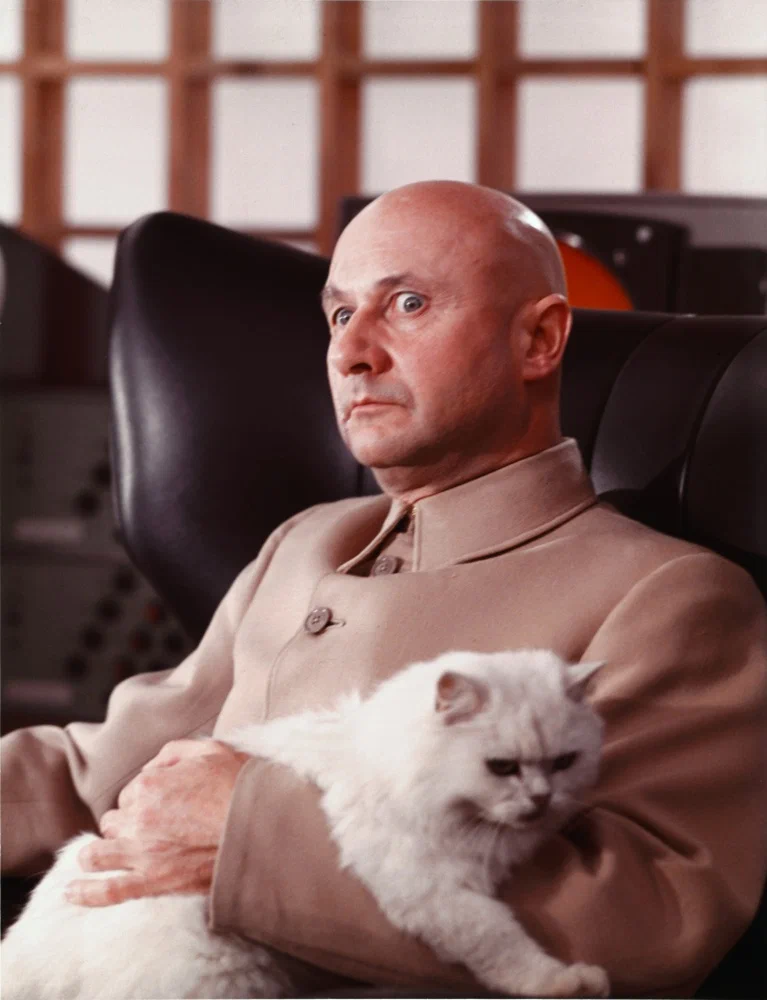 きょとんとした表情で、ペルシャ猫を抱きしめる。ボンドの宿敵・不動のNo.1その名も、エルンスト・スタヴロ・ブロフェルド。
