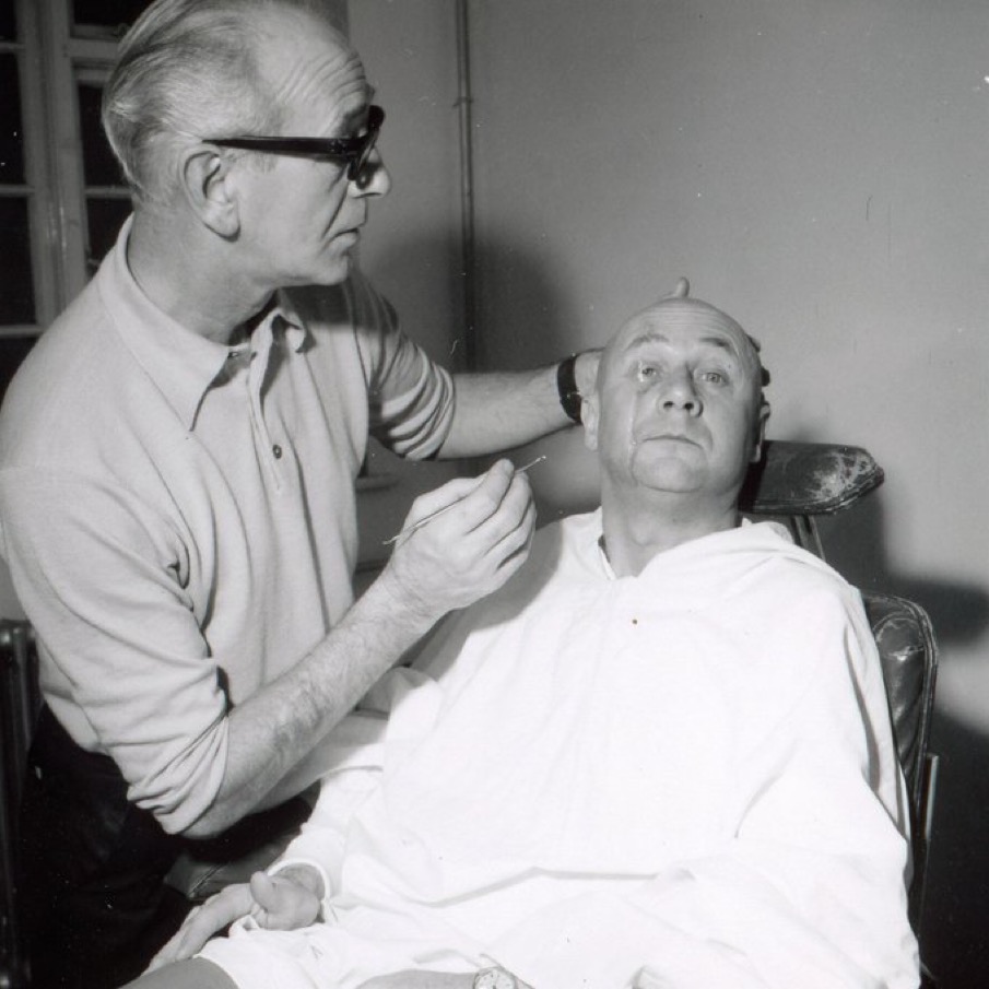 スカーフェイスのメイクを施しているドナルド・プレザンス。