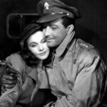 『風と共に去りぬ』のスカーレット・オハラから一転し、マイラ・レスターは戦時下の実用的なファッションで現れます。清潔感たっぷりなスカートスーツにベレー帽のアンサンブルが、「若々しい可憐なヒロイン像」に説得力を生み出しています。